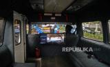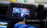 Pengemudi menunjukan fasilitas CCTV yang berada di dalam armada mikrotrans AC usai acara peluncurannya di Kawasan Gondangdia, Jakarta, Jumat (28/1/2022). Pemprov DKI Jakarta melalui Dinas Perhubungan DKI Jakarta bersama PT Transjakarta meluncurkan 60 unit mikrotrans dengan penambahan fasilitas yang akan beroperasi di kawasan Jakarta. Fasilitas yang ditambah seperti dilengkapinya Air Conditioning (AC) hingga CCTV.Prayogi/Republika (FOTO : Prayogi/Republika.)