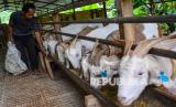 REPUBLIKA.CO.ID,CIAMIS -- Peternak memberi pakan kambing di Kampung Rancawiru, Kabupaten Ciamis, Jawa Barat, Jumat (28/1/2022).