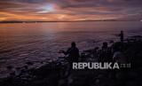 Warga memancing ikan di Pantai Taman Jaya, Pandeglang, Banten, Jumat (28/1/2022). Pandeglang merupakan salah satu kabupaten di Banten yang mempunyai banyak tempat wisata diantaranya Mata Air Cikoromoy, Curug Putri serta pemandangan matahari terbenam di sepanjang bibir pantai. (FOTO : Antara/Muhammad Adimaja)