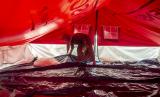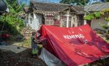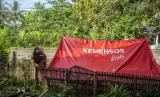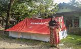 REPUBLIKA.CO.ID,PANDEGLANG -- Seorang warga duduk di tenda bantuan dari Kemensos di Taman Jaya, Pandeglang, Banten, Sabtu (29/1/2022).