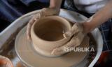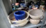 REPUBLIKA.CO.ID,BOGOR -- Perajin sekaligus penggiat keramik Yarah Prihatini menunjukan hasil keramik buatannya berbahan bahan tanah liat di Mini Pottery Studio, Bogor, Jawa Barat, Sabtu (29/1/2022).