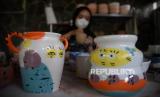 Perajin sekaligus penggiat keramik Yarah Prihatini menunjukan hasil keramik buatannya berbahan bahan tanah liat di Mini Pottery Studio, Bogor, Jawa Barat, Sabtu (29/1/2022). Mini Pottery Studio selain menawarkan jasa pembuatan keramik seperti perabot rumah tangga, pajangan, hingga suvenir juga menawarkan program belajar membuat kramik dan jasa pembakaran kramik. Untuk program belajar harga mulai Rp.300 rb untuk sekali pertemuan sedangkan untuk pesanan pembuatan keramik dimulai dari harga Rp.50 rb hingga Rp.500 rb tergantung ukuran dan kesulitan. (FOTO : Prayogi/Republika.)