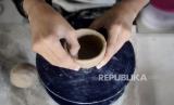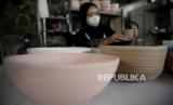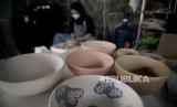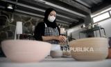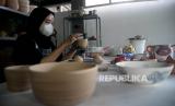 Perajin sekaligus penggiat keramik Yarah Prihatini menyelesaikan pembuatan mangkuk keramik dari bahan tanah liat di Mini Pottery Studio, Bogor, Jawa Barat, Sabtu (29/1/2022). Mini Pottery Studio selain menawarkan jasa pembuatan keramik seperti perabot rumah tangga, pajangan, hingga suvenir juga menawarkan program belajar membuat kramik dan jasa pembakaran kramik. Untuk program belajar harga mulai Rp.300 rb untuk sekali pertemuan sedangkan untuk pesanan pembuatan keramik dimulai dari harga Rp.50 rb hingga Rp.500 rb tergantung ukuran dan kesulitan.Prayogi/Republika (FOTO : Prayogi/Republika.)