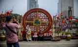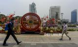 REPUBLIKA.CO.ID, JAKARTA -- Ornamen bernuansa imlek yang terpasang di kawasan Bundaran HI, Jakarta, Ahad (30/1/2022). Oranmen tersebut dipasang dalam rangka menyambut perayaan Tahun Baru Imlek 2573 Kongzili yang jatuh pada hari Selasa 1 Februari 2022.