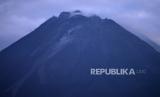 Gunung Merapi terlihat dari Tunggularum, Sleman, Yogyakarta, Selasa (1/2/2022) dini hari. Badan Geologi Kementerian ESDM mencatat adanya pertumbuhan kubah lava Gunung Merapi. Kubah lava bagian tengah kawah tercatat mengalami pertumbuhan 5.000 meter kubik per hari, sedangkan kubah lava barat daya Gunung Merapi tercatat mengalami perumbuhan 10.000 meter kubik per hari. Kepala Badan Geologi Eko Budi Lelono mengatakan, volume kubah tengah kawah terhitung sebesar 3 juta meter kubik dan kubah lava barat daya sebesar 1,67 juta meter kubik. (FOTO : Wihdan Hidayat / Republika)