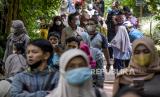 Sejumlah wisatawan mengantre untuk memasuki kawasan Bandung Zoological Garden (Bazooga), Kota Bandung, Selasa (1/2/2022). Pengelola Bandung Zoological Garden (Bazooga) menyatakan, pada libur Tahun Baru Imlek 2022 pihaknya menargetkan 3.000 pengunjung per hari serta meniadakan pertunjukan khas Imlek guna mengurangi kerumunan di area wisata. Foto: Republika/Abdan Syakura (FOTO : REPUBLIKA/ABDAN SYAKURA)