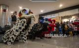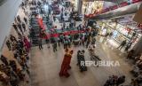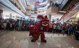 REPUBLIKA.CO.ID,CILEGON -- Pengunjung menyaksikan atraksi Barongsai di salah satu pusat perbelanjaan di Kota Cilegon, Banten, Selasa (1/2/2022).
