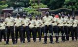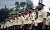 Personel Satuan Pengamanan (Satpam) mengenakan seragam baru saat mengikuti Upacara HUT ke-41 Satpam di Lapangan Bhayangkara Polri, Jakarta, Rabu (2/2/2022). Korbinmas Baharkam Polri resmi memperkenalkan seragam baru milik personel Satuan Pengamanan (Satpam) berwarna krem saat upacara peringatan Hari Ulang Tahun ke-41 Satpam yang mengangkat tema Bersama Polri, Satpam Siap Menjaga Kamtibmas dan Penanggulangan Covid-19. Republika/Thoudy Badai (FOTO : Republika/Thoudy Badai)