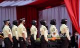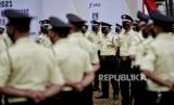 Personel Satuan Pengamanan (Satpam) mengenakan seragam baru saat mengikuti Upacara HUT ke-41 Satpam di Lapangan Bhayangkara Polri, Jakarta, Rabu (2/2/2022). Korbinmas Baharkam Polri resmi memperkenalkan seragam baru milik personel Satuan Pengamanan (Satpam) berwarna krem saat upacara peringatan Hari Ulang Tahun ke-41 Satpam yang mengangkat tema Bersama Polri, Satpam Siap Menjaga Kamtibmas dan Penanggulangan Covid-19. (FOTO : Republika/Thoudy Badai)