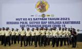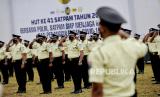 REPUBLIKA.CO.ID,JAKARTA -- Personel Satuan Pengamanan (Satpam) mengenakan seragam baru saat mengikuti Upacara HUT ke-41 Satpam di Lapangan Bhayangkara Polri, Jakarta, Rabu (2/2/2022).