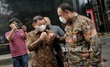 REPUBLIKA.CO.ID,JAKARTA -- Ketua Komisi Pemberantasan Korupsi Firli Bahuri menyambut kedatangan Menteri Perencanaan Pembangunan Nasional (PPN)/Badan Perencanaan Pembangunan Nasional (Bappenas) Suharso Monoarfa saat menyambangi KPK, di Gedung Merah Putih KPK, Jakarta, Rabu (2/2/2022).