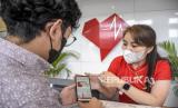 Petugas kesehatan menunjukkan aplikasi RSJP Paramarta kepada warga usai peresmian Rumah Sakit Khusus Jantung dan Pembuluh Darah (RSJP) Paramarta di Jalan Soekarno Hatta, Kota Bandung, Rabu (2/2/2022). RSJP Paramarta merupakan Rumah Sakit Khusus Jantung dan Pembuluh Darah pertama di Bandung yang memiliki enam ruang poliklinik, tiga alat cathlab serta layanan radiologi dan imaging, lifestyle medicine dan berbagai fasilitas pelayanan lainnya. Foto: Republika/Abdan Syakura (FOTO : REPUBLIKA/ABDAN SYAKURA)