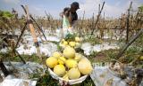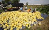 REPUBLIKA.CO.ID, SIDOARJO -- Petani memilah buah melon usai dipanen di areal persawahan kawasan Wonoayu, Sidoarjo, Jawa Timur, Rabu (2/2/2022). Petani setempat mengalami kerugian pada panen kali ini akibat curah hujan yang tinggi yang menyebabkan kualitas buah melon menurun.