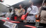 REPUBLIKA.CO.ID, BOGOR -- Kapolres Bogor AKBP Iman Imanuddin bersama Kasat Reskrim AKP Siswo Tarigan menunjukan barang bukti saat ungkap kasus pembunuhan oleh anggota geng motor di Cibinong, Kabupaten Bogor, Jawa Barat, Rabu (2/2/2022).