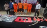 Satreskrim Polres Bogor menangkap empat anggota geng motor serta barang bukti empat senjata tajam jenis celurit yang mengakibatkan korban inisial RR meninggal dunia.