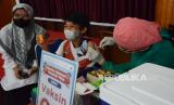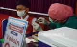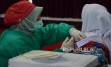 REPUBLIKA.CO.ID, BANDUNG -- Seorang pelajar Sekolah Dasar (SD) disuntik vaksin di Sentra Vaksinasi Anak Generasi Maju yang digelar Danone Indonesia bersama dengan Pemprov Jawa Barat, di Gedung Sekoper Cinta, Kota Bandung, Rabu (2/2/2022).