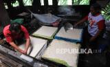 REPUBLIKA.CO.ID, Pekerja membuat tahu di Nanggulan, Tingkir, Salatiga, Jawa Tengah, Rabu (2/2/2022). Menurut produsen tahu, harga bahan baku kedelai untuk saat ini mengalami kenaikan dari Rp9 ribu menjadi Rp10.300 per kilogram. ANTARA FOTO/Aloysius Jaro