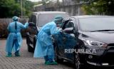 Warga dengan menggunakan kendaraan pribadi usai melakukan tes swab COVID-19 di GSI Lab (Genomik Solidaritas Indonesia), Cilandak, Jakarta, Rabu (2/2/2022). Tren laju kasus Covid-19 di Indonesia alami pelonjakan dalam beberapa waktu terakhir dengan kasus harian Covid berada di angka 10 ribu. Bahkan, laporan Satgas per Selasa (1/2/2022), penambahan kasus harian Covid mencapai 16.021.Prayogi/Republika (FOTO : Prayogi/Republika.)