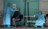 REPUBLIKA.CO.ID,JAKARTA -- Tenaga kesehatan melakukan tes swab COVID-19 terhadap warga di GSI Lab (Genomik Solidaritas Indonesia), Cilandak, Jakarta, Rabu (2/2/2022).