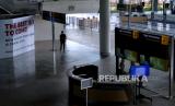 REPUBLIKA.CO.ID,BADUNG -- Pekerja melintas di area Terminal Internasional yang lengang di Bandara Internasional I Gusti Ngurah Rai, Badung, Bali, Rabu (2/2/2022).