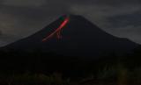 REPUBLIKA.CO.ID,YOGYAKARTA -- Gunung Merapi yang mengeluarkan lava pijar terlihat dari dari kawasan Tunggularum, Turi, Sleman, D.I Yogyakarta, Rabu (2/2/2022).