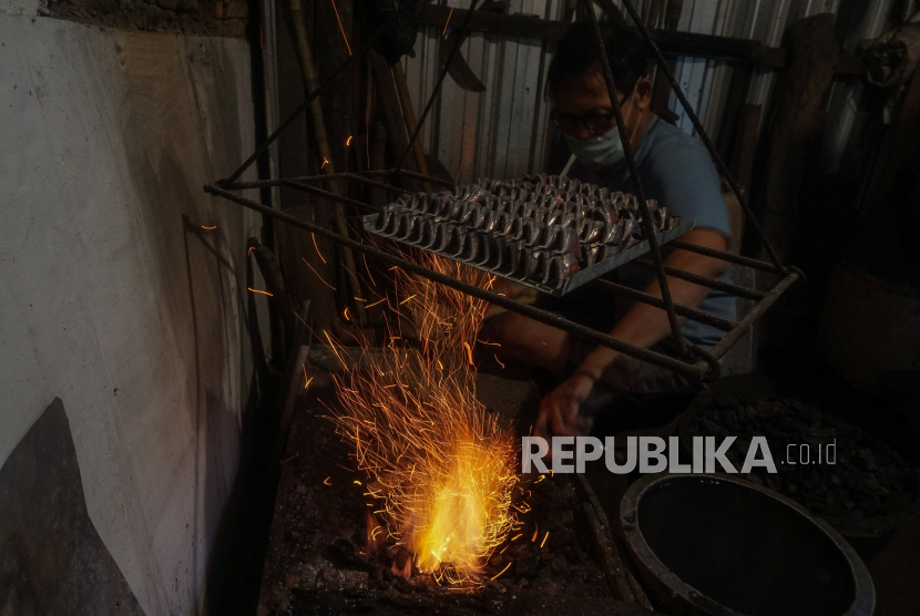 REPUBLIKA.CO.ID, PEKALONGAN -- Perajin alat canting tulis, Amat Cahari memproduksi canting tulis di industri rumahan Poppy Canting di Kuripan Kertoharjo, Pekalongan, Jawa Tengah, Rabu (2/2/2022).