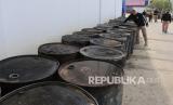 REPUBLIKA.CO.ID, INDRAMAYU -- Petugas Satgas Pangan memeriksa stok minyak goreng saat melakukan sidak di salah satu gudang distributor di Indramayu, Jawa Barat, Kamis (3/2/2022). Sidak tersebut untuk mencegah terjadinya penimbunan dan memastikan ketersediaan minyak goreng di pasaran.