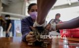 Petugas menyuntikkan vaksin rabies kepada hewan peliharaan di Mal Metropolis, Kota Tangerang, Banten, Kamis (3/2/2022). Pemerintah Kota Tangerang melalui Dinas Ketahanan Pangan (DKP) menyediakan 80 dosis vaksin rabies hewan secara gratis untuk mencegah adanya penyakit rabies pada hewan peliharaan. (FOTO : Antara/Fauzan)
