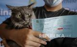 REPUBLIKA.CO.ID, TANGERANG -- Warga menunjukkan kartu vaksin rabies hewan peliharaannya di Mal Metropolis, Kota Tangerang, Banten, Kamis (3/2/2022). Pemerintah Kota Tangerang melalui Dinas Ketahanan Pangan (DKP) menyediakan 80 dosis vaksin rabies hewan secara gratis untuk mencegah adanya penyakit rabies pada hewan peliharaan. ANTARA FOTO/Fauzan