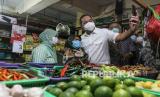 Menteri Perdagangan Muhammad Lutfi (kanan) saat meninjau harga kebutuhan pokok di Pasar Kramat Jati, Jakarta, Kamis (3/2/2022). Kunjungan Menteri Perdagangan tersebut dalam rangka meninjau harga dan ketersediaan kebutuhan bahan pokok dan minyak goreng. (FOTO : Antara/Asprilla Dwi Adha)