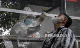 REPUBLIKA.CO.ID, BANDUNG -- Warga menjalani tes usap antigen di Dinas Kesehatan Kota Bandung, Jalan Supratman, Kota Bandung, Kamis (3/2/2022).