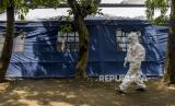 Petugas kesehatan berjalan menuju bilik tes usap di Dinas Kesehatan Kota Bandung, Jalan Supratman, Kota Bandung, Kamis (3/2/2022). Kepala Bidang Pencegahan dan Pengendalian Penyakit Dinas Kesehatan Kota Bandung Rosye Arosdiani mengatakan, kasus harian Covid-19 dalam dua minggu terakhir di Bandung mengalami peningkatan 10 kali lipat dibandingkan dua minggu sebelumnya atau dari 70 kasus menjadi 700 kasus. Hingga Rabu (2/2/2022), kasus Covid-19 aktif di Kota Bandung sebanyak 793 kasus dan total keseluruhan kasus Covid-19 terkonfirmasi sebanyak 44.554 kasus. Foto: Republika/Abdan Syakura (FOTO : REPUBLIKA/ABDAN SYAKURA)