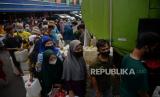 Warga mengantre untuk membeli minyak goreng dengan harga Rp 10.500 per liter di pasar Kramat Jati, Jakarta, Kamis (3/3/2022). Pemerintah melalui Kementerian Perdagangan (Kemendag) telah menetapkan ketentuan baru harga eceran tertinggi (HET) untuk minyak goreng yaitu Rp 11.500/liter untuk kemasan curah, Rp 13.500/liter untuk kemasan sederhana, dan Rp 14.000/liter untuk kemasan premium.Prayogi/Republika. (FOTO : Prayogi/Republika)