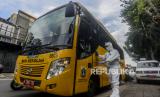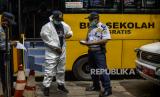 Supir bus bersiap mengantarkan pasien Covid-19 untuk menuju RSDC Wisma Atlet di Puskesmas Kecamatan Tebet, Jakarta, Kamis (3/2/2022). Satgas Penanganan Covid-19 mencatat kenaikan kasus positif Covid-19 dalam satu pekan terakhir mencapai 56.000 kasus atau meningkat hingga 40 kali lipat dibandingkan dengan awal Januari lalu. Republika/Putra M. Akbar (FOTO : Republika/Putra M. Akbar)