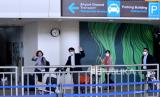 Sejumlah penumpang pesawat maskapai penerbangan Garuda Indonesia dengan nomor penerbangan GA881 tiba di Bandara Internasional I Gusti Ngurah Rai, Badung, Bali, Kamis (3/2/2022). Penerbangan dengan rute Narita, Jepang menuju Bali yang mengangkut 12 orang penumpang tersebut menjadi penerbangan komersial rute internasional perdana yang dilayani Bandara I Gusti Ngurah Rai setelah pintu masuk internasional di bandara tersebut ditutup akibat pandemi COVID-19. (FOTO : ANTARA FOTO/Fikri Yusuf)