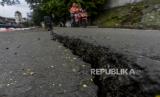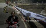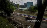 REPUBLIKA.CO.ID, JAKARTA -- Pengendara motor melintas di dekat jalan inspeksi Kali Ciliwung yang ambles di kawasan Senen, Jakarta, Jumat (4/2/2022). Jalan yang berada di belakang RSCM tersebut ambles sepanjang 40 meter akibat terkikis oleh hujan deras sehingga mempersempit ruas jalan tersebut.