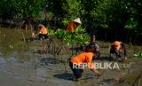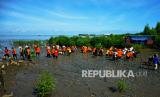 REPUBLIKA.CO.ID, MAKASSAR -- Anggota Basarnas bersama masyarakat nelayan menanam bibit mangrove di kawasan Pantai Untia, Biringkanaya, Makassar, Sulawesi Selatan, Jumat (4/2/2022). Penanaman bibit mangrove tersebut merupakan rangkaian kegiatan peringatan HUT ke-50 Basarnas yang bertujuan untuk melindungi habitat laut dan pantai dari abrasi.