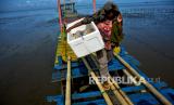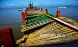 Jembatan kayu yang menjadi akses nelayan dari sandaran perahu ke pemukiman itu kondisinya rusak sehingga membahayakan warga yang melintas terutama saat air laut sedang pasang.