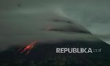 REPUBLIKA.CO.ID, SLEMAN -- Luncuran lava pijar Gunung Merapi terlihat dari Turi, Sleman, DI Yogyakarta, Sabtu (5/2/2022). Menurut data BPPTKG Yogyakarta periode pengamatan 5 Februari 2022 pukul 00.00-06.00 WIB telah terjadi 48 guguran dengan potensi bahaya berupa guguran lava pijar dan awan panas Gunung Merapi pada sektor selatan-barat daya meliputi Sungai Boyong sejauh maksimal lima km, Sungai Bedog, Krasak, Bebeng sejauh maksimal tujuh km serta sektor tenggara meliputi Sungai Woro sejauh maksimal tiga km dan Sungai Gendol lima km.