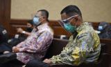 Terdakwa kasus suap pengurusan pajak Angin Prayitno Aji (kanan) dan Dadan Ramdani (kiri) menunggu dimulainya sidang pembacaan putusan di Pengadilan Tipikor, Jakarta, Jumat (4/2/2022). Majelis hakim memvonis mantan Direktur Pemeriksaan dan Penagihan Ditjen Pajak Kemenkeu Angin Prayitno Aji dengan hukuman sembilan tahun pidana penjara dan denda Rp500 juta subsider tiga bulan kurungan serta mantan Kepala Sub Direktorat Kerja Sama dan Dukungan Pemeriksaan Ditjen Pajak Kemenkeu Dadan Ramdani divonis enam tahun penjara dan denda Rp300 juta subsider dua bulan kurungan karena terbukti secara sah melakukan suap terkait pemeriksaan perpajakan untuk tiga wajib pajak yakni PT Gunung Madu Plantations, PT Bank PAN Indonesia Tbk, dan PT Jhonlin Baratama. (FOTO : ANTARA FOTO/Indrianto Eko Suwarso)