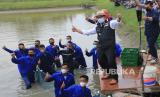 REPUBLIKA.CO.ID, CIREBON -- Gubernur Jawa Barat Ridwan Kamil (kiri) bersama istri Atalia Praratya (kanan) memanen udang vanamei usai meresmikan ruang praktek siswa SMK 1 Mundu di Cirebon, Jawa Barat, Jumat (4/2/2022). Gubernur Jawa Barat Ridwan Kamil berharap pembangunan ruang praktek siswa itu dapat berperan terhadap ketahanan pangan dan mencetak Sumber daya manusia yang inovatif di kawasan segitiga Rebana Jawa Barat.