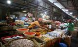 REPUBLIKA.CO.ID, JAKARTA -- Pedagang menunggu pembeli di Pasar Kebayoran, Jakarta, Sabtu (5/2/2022). Centre for Strategic and International Studies (CSIS) meminta pemerintah bisa mengantisipasi ketersediaan bahan pokok seiring peningkatan kasus COVID-19 akibat varian Omicron.