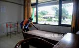 REPUBLIKA.CO.ID, JAKARTA -- Petugas dari Pemprov DKI Jakarta merapikan fasilitas isolasi mandiri pasien Covid-19 di Graha Wisata Ragunan, Jakarta, Ahad (6/2/2022). Pemprov DKI Jakarta menyiapkan kembali Graha Wisata Ragunan sebagai tempat isolasi terpadu pasien Covid-19 yang akan dibuka secara bertahap menyusul perkembangan lonjakan kasus aktif di Jakarta.