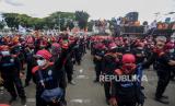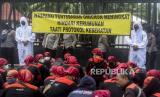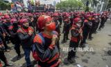 Massa buruh melaksanakan aksi demo tuntut di depan Gedung DPR..