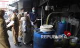 REPUBLIKA.CO.ID, SOLO -- Petugas Tim Pengendalian Inflasi Daerah (TPID) melakukan sidak minyak goreng di Pasar Gede, Solo, Jawa Tengah, Senin (7/2/2022). Sidak tersebut untuk memastikan ketersediaan minyak goreng di pasar setempat sekaligus mencegah terjadinya penimbunan minyak yang menyebabkan kelangkaan di pasaran.