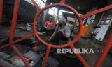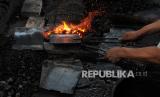 REPUBLIKA.CO.ID, KLATEN -- Perajin membakar lempengan baja untuk kerajinan mata cangkul di Padas, Karanganom, Klaten, Jawa Tengah, Senin (7/2/2022). Kerajinan mata cangkul berbahan baku baja itu dijual dari harga Rp65.000 hingga Rp75.000 tergantung kelas kualitasnya untuk memenuhi permintaan pasar di Kalimatan Selatan dan Jawa Timur.