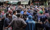 REPUBLIKA.CO.ID, TANGERANG -- Sejumlah pedagang mengantre untuk mendapatkan surat tanda penyewaan lapak dagang saat penataan ulang kawasan kuliner Pasar Lama, Kota Tangerang, Banten, Senin (7/2/2022).