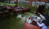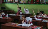 Siswa mengikuti Pembelajaran Tatap Muka (PTM) di Madrasah Ibtidaiyah Negeri 1 Langkai, Palangkaraya, Kalimantan Tengah, Selasa (8/2/2022). Pemkot Palangkaraya memberlakukan PTM dengan sistem penyesuaian zonasi kelurahan penyebaran COVID-19, seperti PTM 100 persen bagi wilayah yang berada di zona hijau dan 50 persen di zona oranye serta pembelajaran secara daring untuk kawasan zona merah COVID-19. (FOTO : Antara/Makna Zaezar)