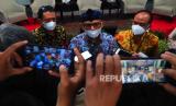 Kepala Kantor Perwakilan Bank Indonesia Jawa Barat Herawanto (tengah) didampingi Kepala Kantor Regional 2 Otoritas Jasa Keuangan Jawa Barat Indarto Budiwitono (kiri) dan Kepala Kantor Wilayah Direktorat Jenderal Perbendaharaan Jawa Barat Dedi Supandi menjawab pertanyaan wartawan usai diskusi Perekonomian Jawa Barat 2021 dan Prospek tahun 2022 di Kantor Perwakilan BI Provinsi Jawa Barat, Bandung, Jawa Barat, Selasa (8/2). (FOTO : REPUBLIKA)