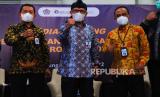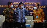 Kepala Kantor Perwakilan Bank Indonesia Jawa Barat Herawanto (tengah) berbincang dengan Kepala Kantor Regional 2 Otoritas Jasa Keuangan Jawa Barat Indarto Budiwitono (kiri) dan Kepala Kantor Wilayah Direktorat Jenderal Perbendaharaan Jawa Barat Dedi Supandi usai diskusi bertema Perekonomian Jawa Barat 2021 dan Prospek tahun 2022 di Kantor Perwakilan BI Provinsi Jawa Barat, Bandung, Jawa Barat, Selasa (8/2). (FOTO : REPUBLIKA)